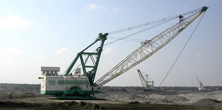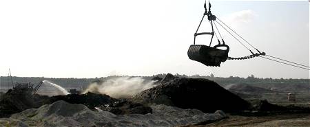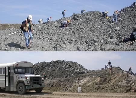 Candace led the group first to Pit-car area B, the tailings that had been so productive last weekend, The new rains seem to have caused those soft sands to bury material then harden under the May sun. Collecting proved to be quite difficult. On a more positive note, this new location provides a splendid view of mining operations -- dragline, slurry area, etc.