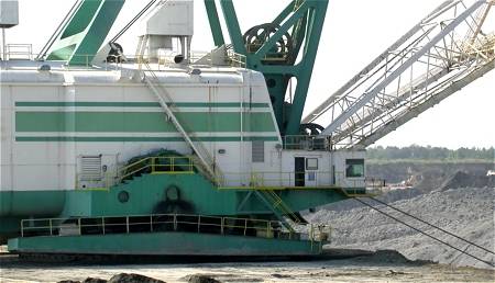 Pat had the weekend off as I was finally able to visit the mine, joining the Calvert Marine Museum and North Carolina Fossil Club on Saturday. The weather forecast was sunny and in the high 70s, but the outcome of collecting was unknown. Curtis met the day's 32 visitors and explained that a new collecting area was being made available in the pit itself -- 'pit-car' area A. During the mining operation, phosphatic sediments are accumulated in various areas from which they will be mixed with water and transported through the pipeline for processing. When these hydration-stations are moved, the leftover tailings (Pungo sediments) are consolidated into mounds (about 30 feet high). There are currently several of these mounds in the pit. Saturday's visitors would be the first to sample this experience.