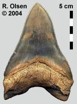 Pat Young reports: Great weather (77-80°) and the past week's three inches of rain gave all of us high hopes for prolific collecting this weekend. Saturday's group consisted of members of the Maryland Geological Society, NC Shell Club and the Hatteras Fossil Club. Starting the day at pit-car area A, we found the soft Pungo sands had washed considerably. Finally, "Triaenodon obesus" revealed itself. Rita McDaniel managed to find two although only one was complete. John Timmerman came away with the largest tooth, a 3-3/8" C. chubutensis that unfortunately was missing a cusplet. Still it was a beautiful specimen. A couple of smaller megs were also found, including two very tiny posteriors. Jeff Fisher found a really nice Squalodon molar. Several large hastalis were found. Judy Stiles came away with the best Anoxypristis tooth I have seen from this type of material. Most of these teeth are very worn and black when they turn-up. Hers has excellent detail and was a nice brown color. Other finds were typical lower Pungo smaller teeth.